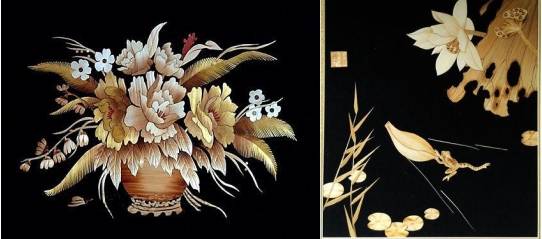 1.通过直观演示法讲解芦苇画起源、制作工艺,让学生了解中国传统的非物质文化遗产。芦苇画必须要经过选、熨、刮、粘、刻、剪、编、烙、组等几十道工序,才能完成画作。