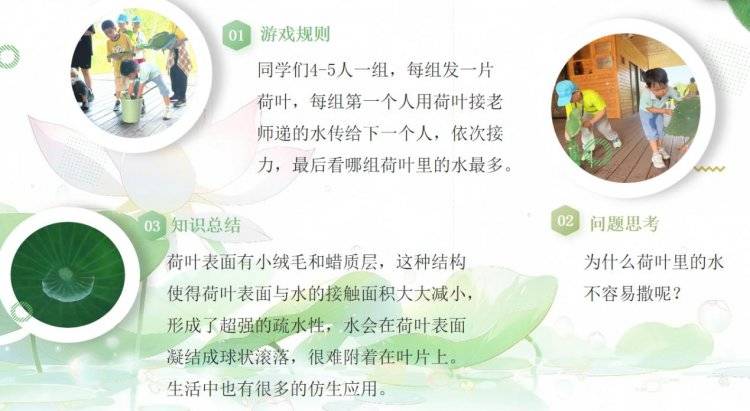 1.通过观察荷叶形态、参与实验游戏,提升观察能力和动手实践能力;
