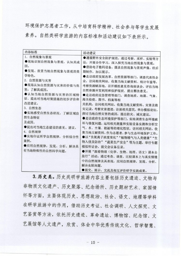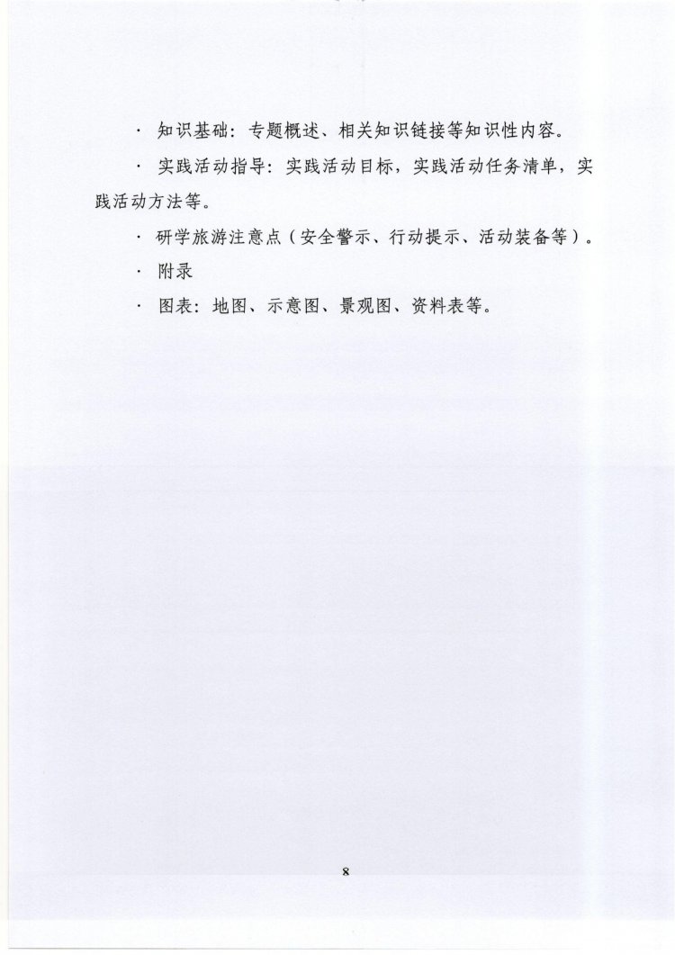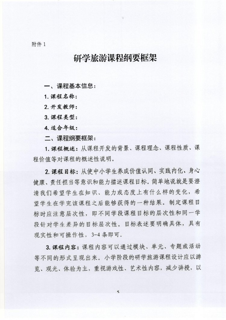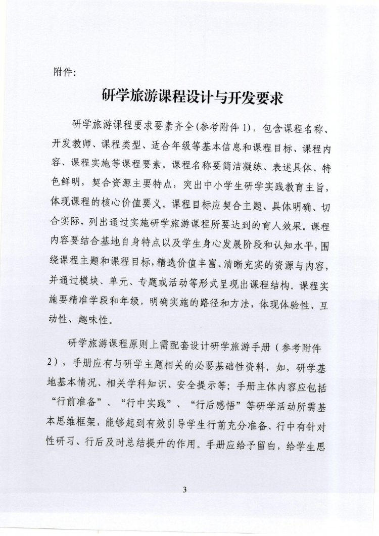 现将衡水市教育科学研究所制定的《研学旅游课程设计与开 发要求》转发各试点单位。请各试点单位按照文件要求,结合各 基地自身特色,抓紧组织课程研发及提升。每个基地需至少具备 两门以上研学课程。评定类试点单位要于5月24日前,创建类 和培育类试点单位要于5月31日前拿出高质量研学课程。市研 学旅游专班办公室将视情况组织专家进行审定。同时请各试点单 位认真做好市研学旅游示范基地评定准备各项工作。