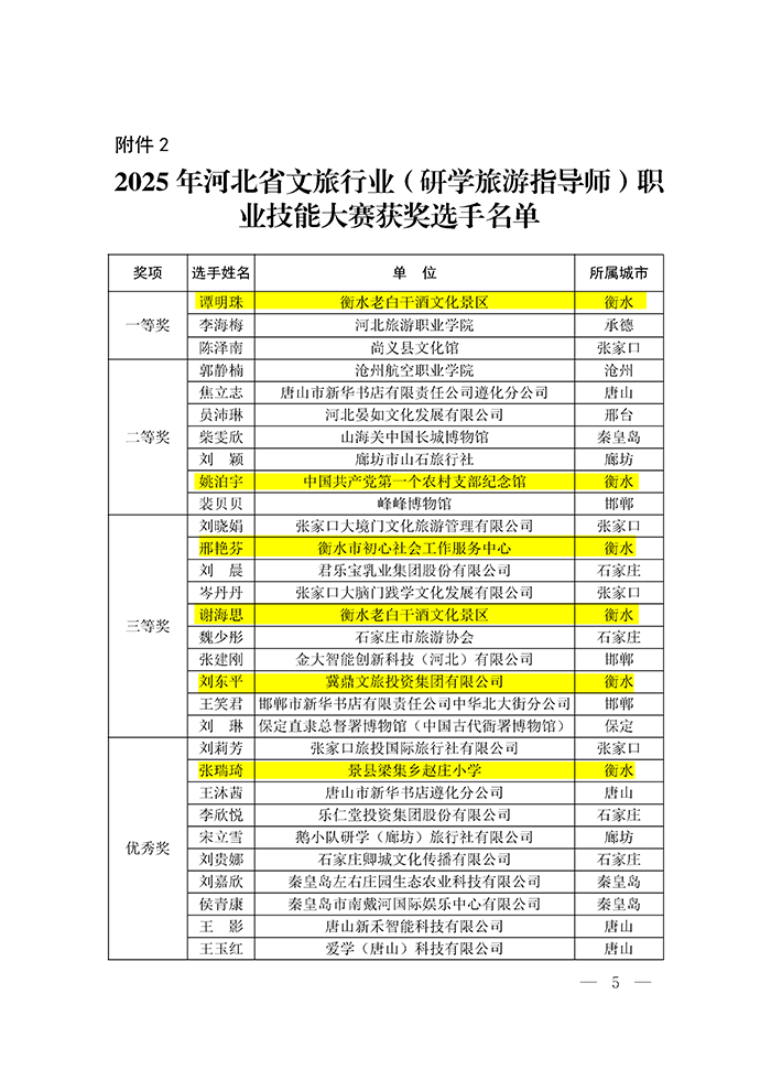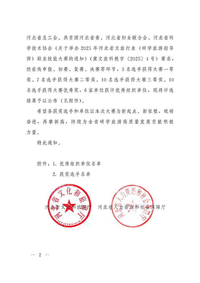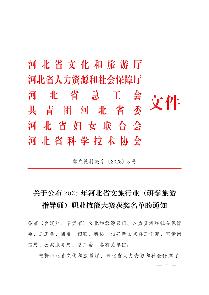 关于公布2025年河北省文旅行业 (研学旅游指导师)职业技能大赛获奖名单的通知